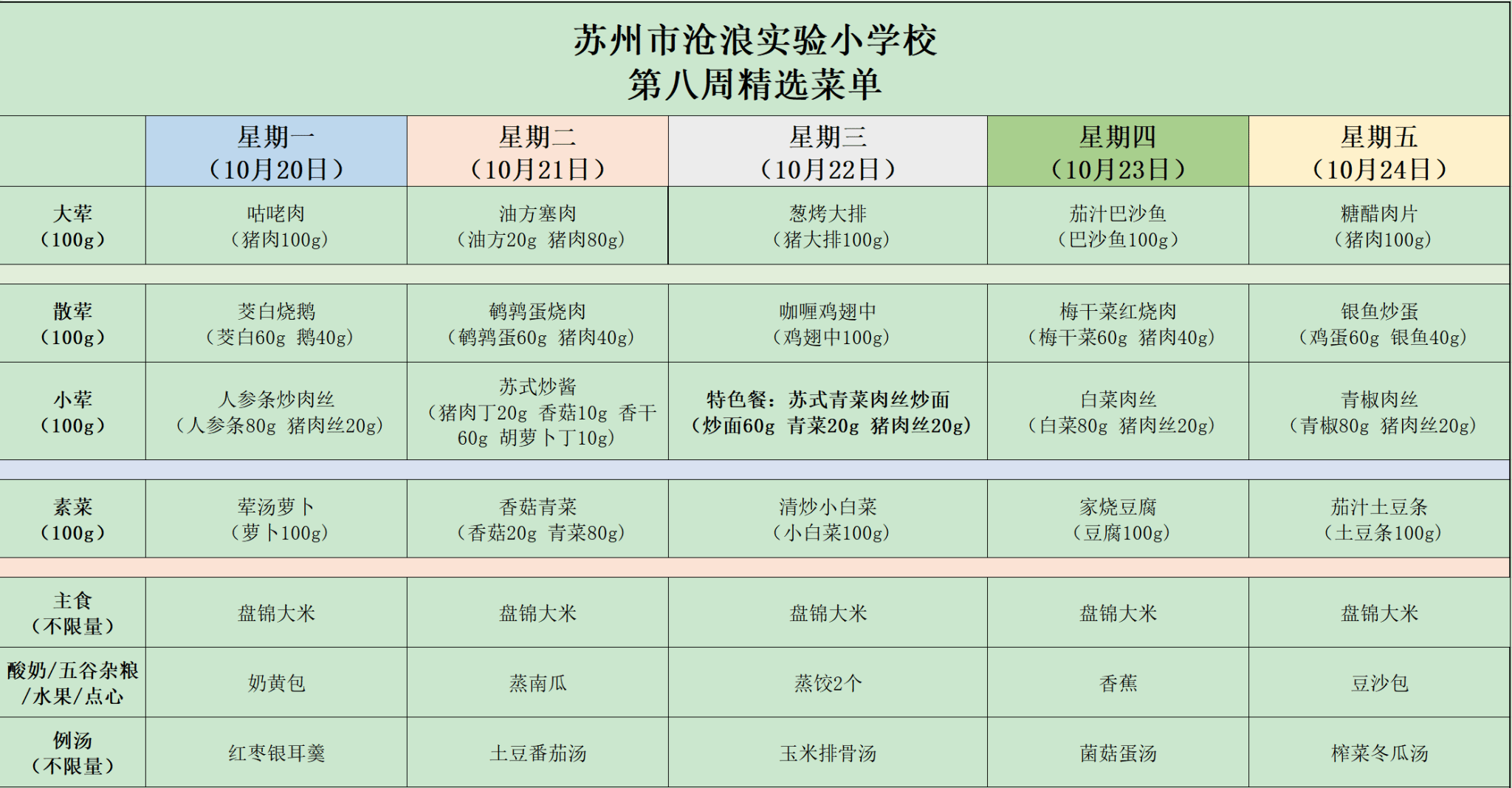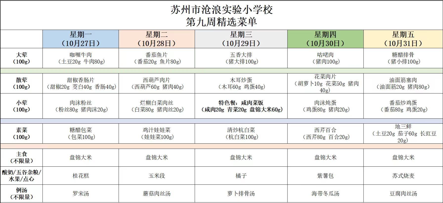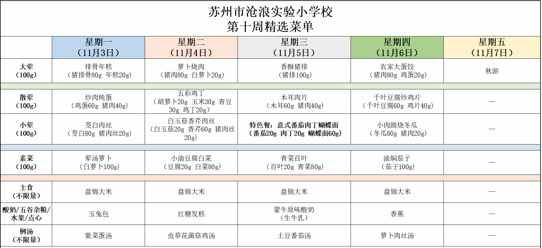 2025-2026学年度第一学期菜单